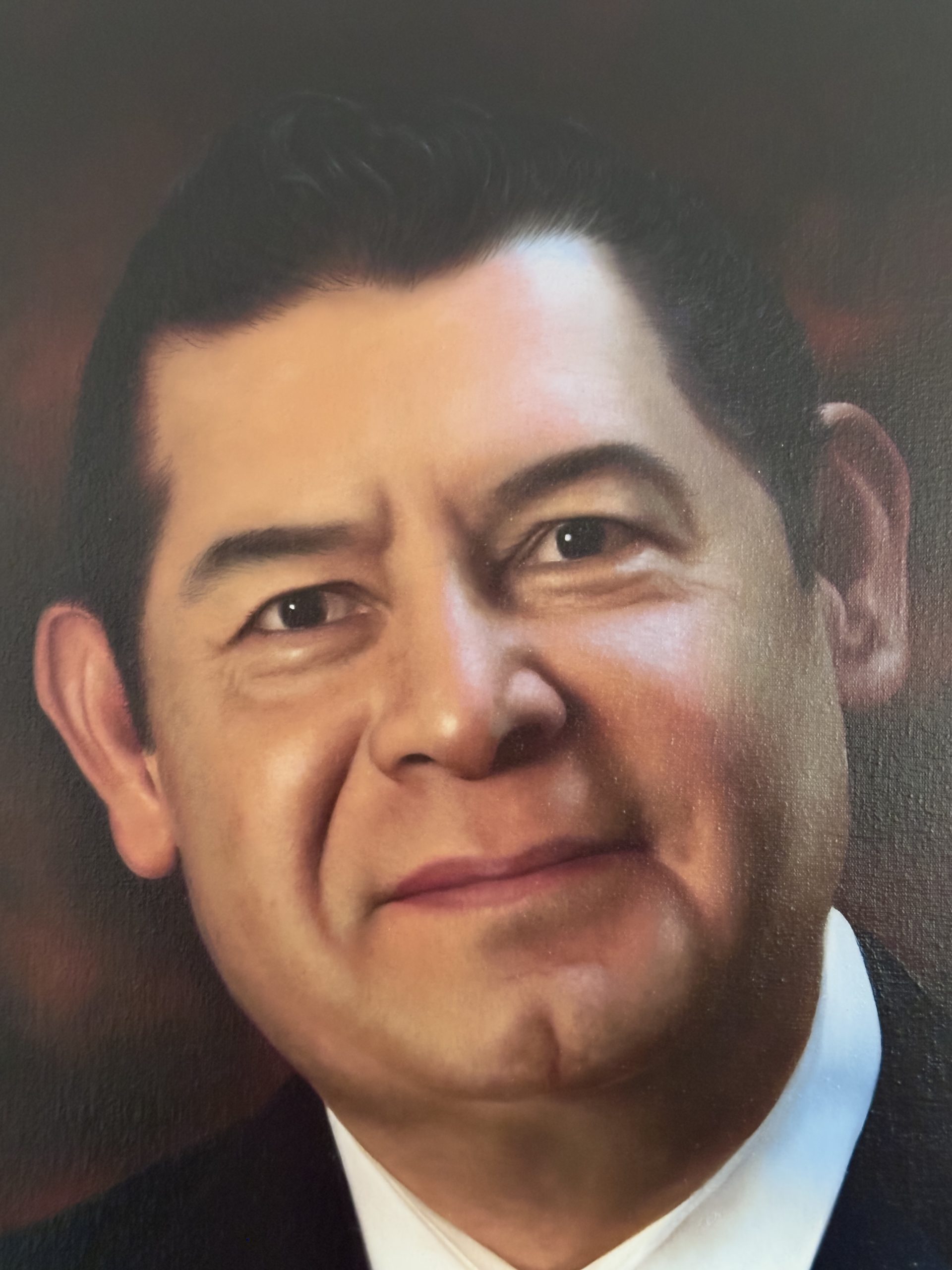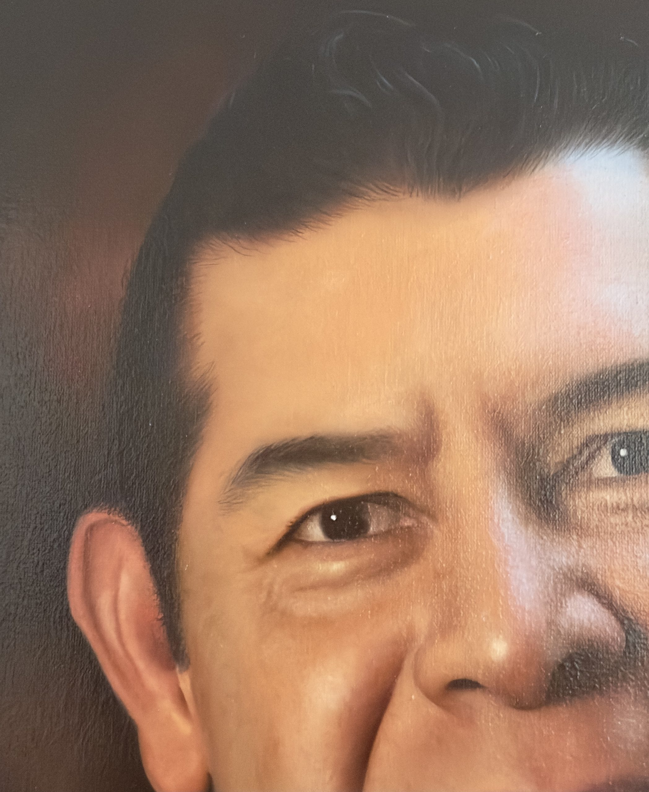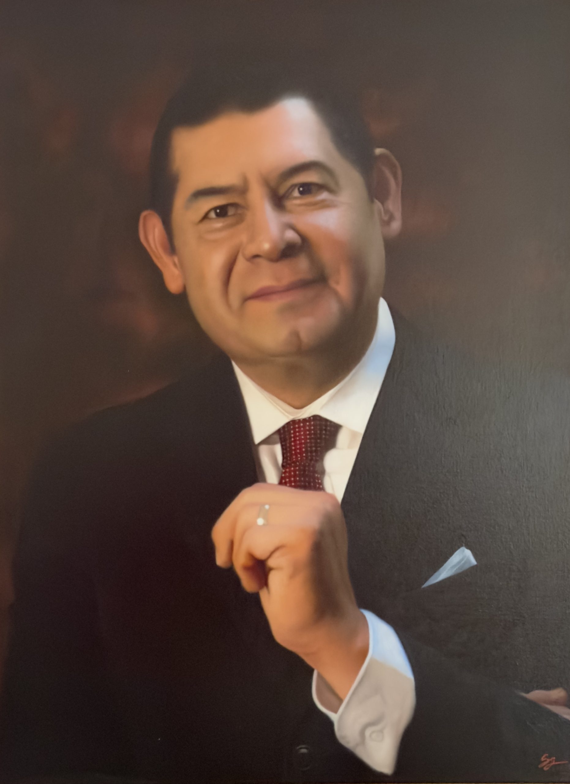 En el escenario del arte figurativo contemporáneo, este retrato realizado por el maestro Sergio González se presenta como una obra de notable precisión y fuerza expresiva. La pintura captura la imagen de Alejandro Armenta con un realismo técnico riguroso, donde el manejo de la luz juega un papel fundamental al modelar el rostro con una suavidad que resalta los volúmenes sin endurecer las facciones. Es un trabajo que demuestra un dominio absoluto del claroscuro, permitiendo que la iluminación defina la estructura ósea y la calidez de la piel con una naturalidad que dota al sujeto de una presencia casi tangible frente al espectador.