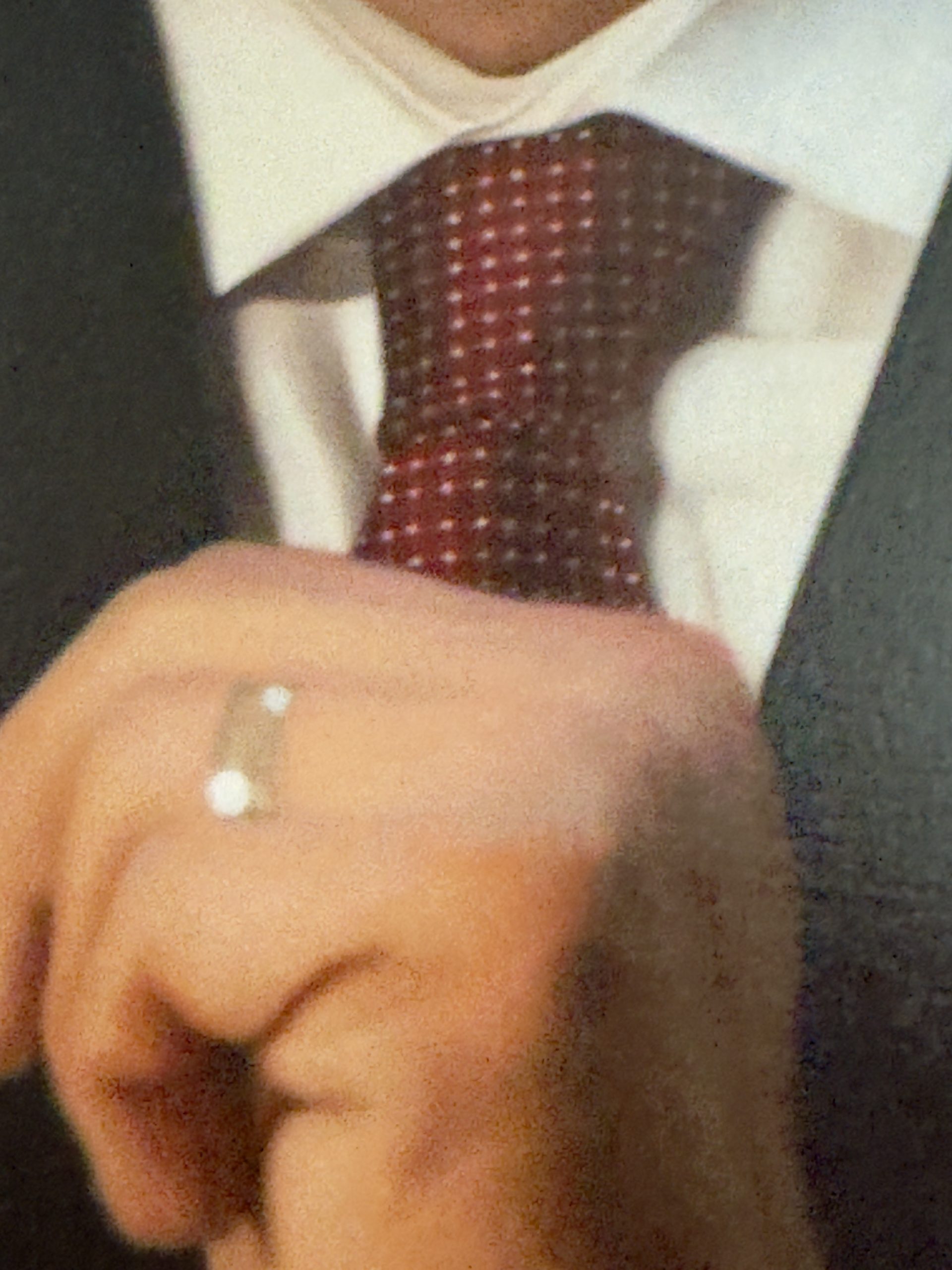La composición obedece a un equilibrio solemne, situando a la figura en un plano medio que destaca sobre un fondo de atmósfera neutra y matices cálidos, evocando la profundidad de los retratos clásicos. La armonía cromática es sobria y elegante: la oscuridad del traje formal sirve de marco para resaltar la blancura de la camisa, mientras que la corbata en tonos rojizos introduce un acento de color vibrante que dirige la mirada hacia el centro de la obra. González exhibe una atención meticulosa a la textura, logrando diferenciar con pincelada experta la calidad de la tela de sastrería frente a la suavidad orgánica de la mano y el rostro, creando una experiencia visual rica en matices táctiles.
