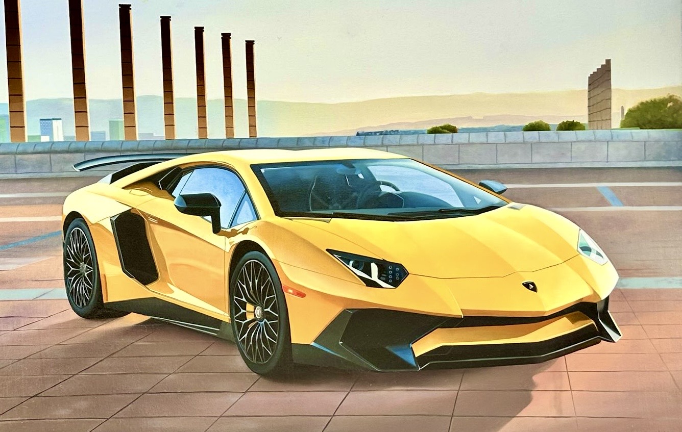 En el panorama del realismo contemporáneo de alta precisión, esta interpretación de un Lamborghini realizada por el maestro Sergio Gonzalez se impone como un estudio magistral de la geometría agresiva y la arquitectura de la velocidad. A diferencia de las formas orgánicas y fluidas de otros deportivos, aquí el artista se enfrenta al reto de los planos cortantes y las aristas vivas, utilizando la luz con una frialdad quirúrgica que define cada faceta de la carrocería como si se tratara de un diamante tecnológico tallado para cortar el viento. La iluminación impacta sobre las superficies angulosas, creando contrastes dramáticos de luces y sombras que acentúan la tridimensionalidad contundente del vehículo.